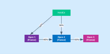 Dans ce schéma, HoldCo contrôle les trois sociétés Opco1, Opco2 et Opco3: